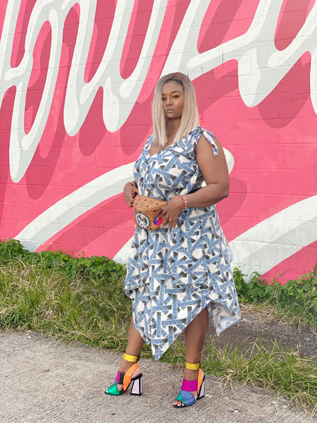 Coradorables WOMENS BLUE TRIBAL Handkerchief Dress